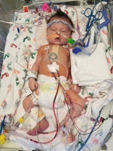 A few days after our anatomy scan, we met with a cardiologist who confirmed my suspicions based on research I had done. Theo was diagnosed with Hypoplastic Left Heart Syndrome (HLHS). A very rare and complex heart defect. So rare, and so complex, that very few surgeons can perform the necessary procedures. We then found out that Theo would have to be delivered at the Children’s Hospital in Aurora, Colorado, and his surgeries would be done shortly after his birth. We began making plans and the necessary arrangements, and Theo was born on July 7, 2017 (7/7/17, lucky 7s!) in Aurora. We were so fortunate to be able to spend four days with Theo before his first surgery, a luxury that many heart parents aren’t afforded. Many times, the little heart babies have to undergo immediate intervention. Theo’s Norwood procedure was performed on July 11, by the incredible Dr. Jaggers, and it was complication free. We were on the road to recovery so we could go home and enjoy our little guy outside of a hospital room. That was the beginning of a very long, bumpy, stressful, and frustrating road. Theo would spend the next nine weeks in the hospital and undergo a total of two open heart surgeries and 1 heart cath, each carrying the same risks and concerns. We were discharged in early September and able to go home shortly thereafter. We enjoyed a relatively quiet 2 months at home before Theo’s heart told us he was ready for his next surgery. After a little scare on a Saturday morning in November, Theo was life flighted to Children’s Hospital Colorado, and he had his Glenn procedure, his third open heart surgery in four months, on the Monday before Thanksgiving, 2017. We ate Thanksgiving dinner in the hospital with Theo’s grandparents, and were discharged from the hospital three days later.